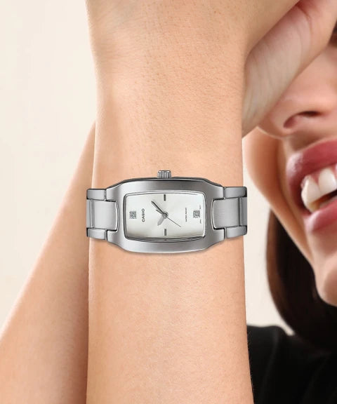 Con su carátula blanca refinada y caja de acero inoxidable, el Casio LTP-1165A-7C2DF proyecta elegancia atemporal en un diseño minimalista. Un reloj perfecto para acompañar tu estilo en el día a día, combinando sencillez y sofisticación.