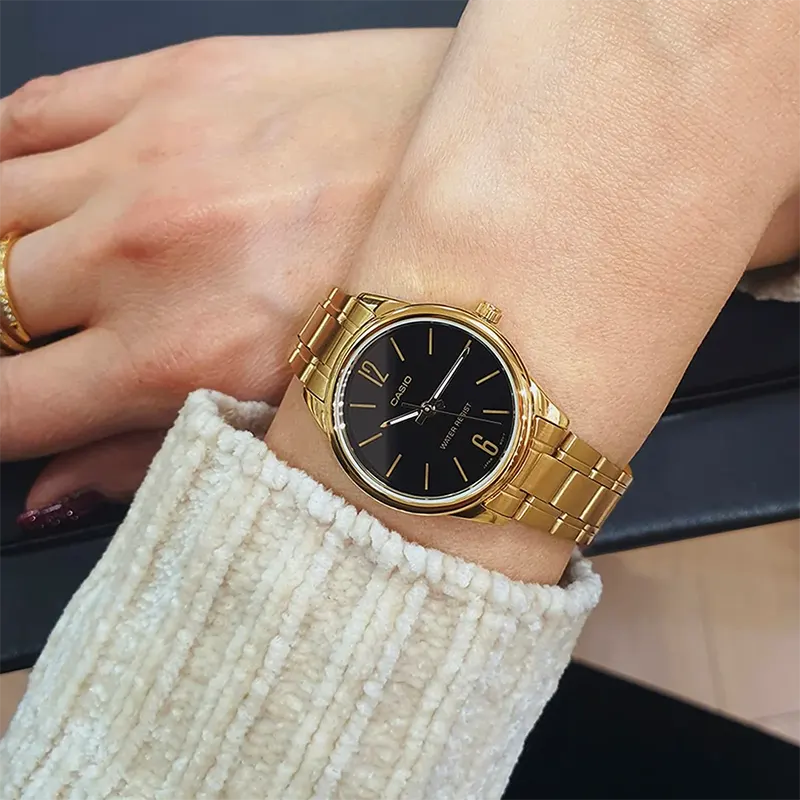 El Casio LTP-V005G-1B combina elegancia y minimalismo en su diseño.
