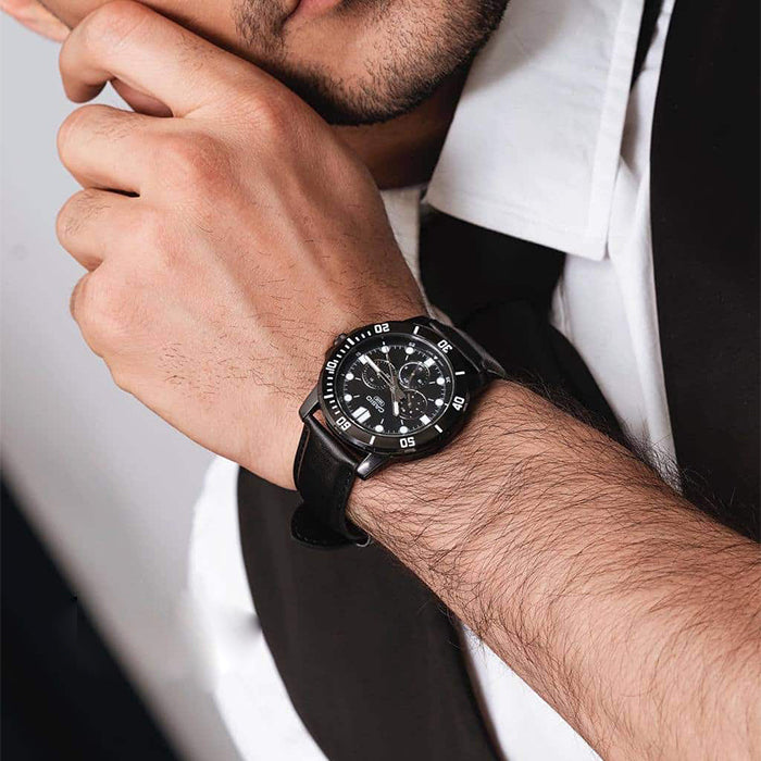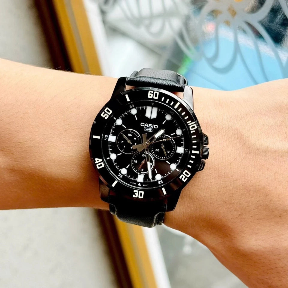 Casio MTP-VD300BL-1E - un reloj clásico con un toque moderno en correa de cuero negro.